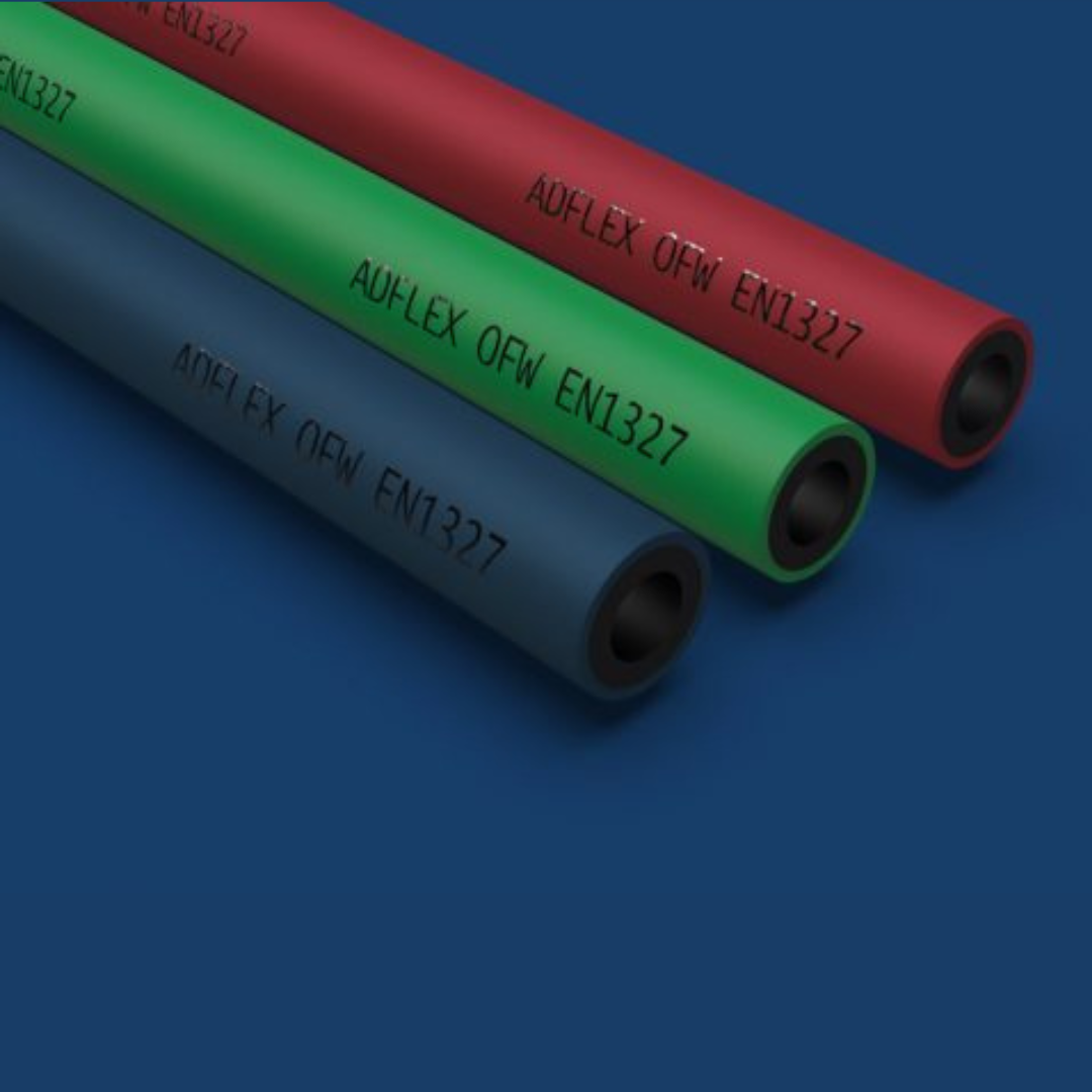 Pipe for fuel oxygen-gas and fuel air-gas (LPG/MPS) pipes, as required by EN 1327. PVC tube with high tenacity polyester textile reinforcement.